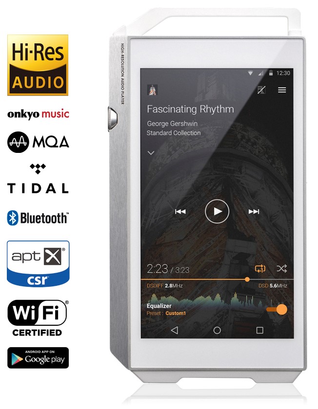 Leitor de áudio portátil digital HiRes com interface de utilizador intuitiva, suporte de MQA, serviços de streaming de TIDAL, Deezer e Spotify, DLNA, Bluetooth, WiFi e WiFi Direct.